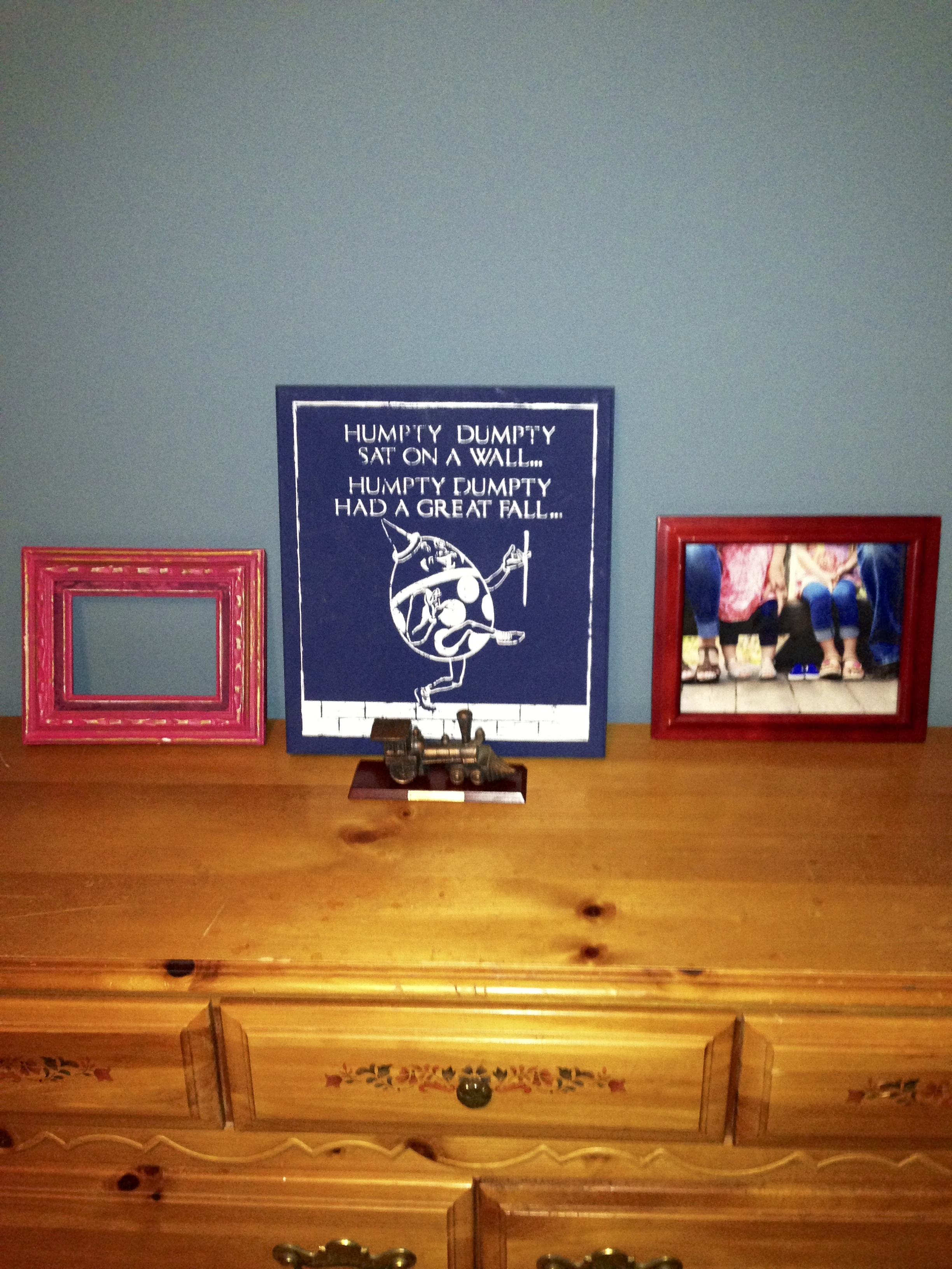 Joseph’s Dresser Repaint Only “before” picture I have. :( Prime Paint Drying Scuff it up! Clear coat Spray paint hardware (no before pic) Move to the room Set it up!